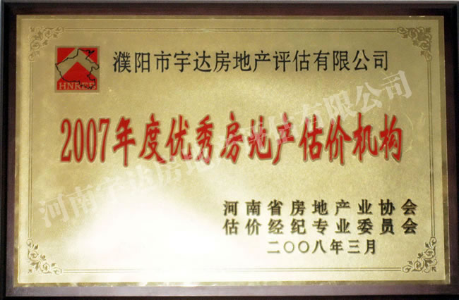 08年優(yōu)秀估價(jià)機(jī)構(gòu)